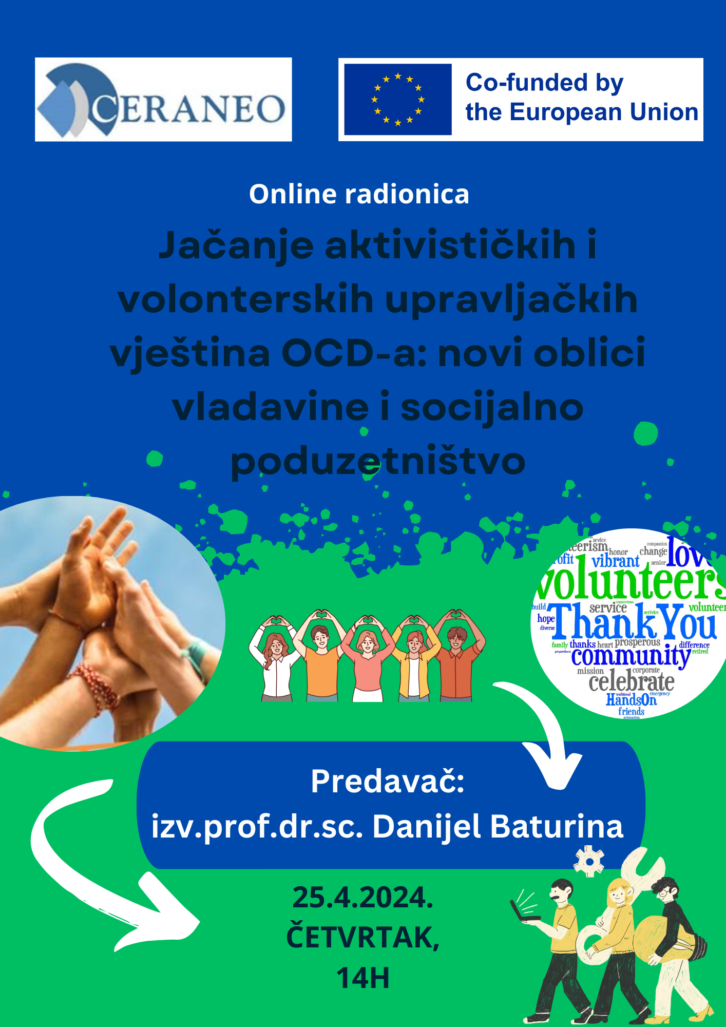 Ovim Vas putem pozivamo da nam se pridružite na radionici Jačanje aktivističkih i volonterskih upravljačkih vještina OCD-a: novi oblici vladavine i socijalno poduzetništvo.